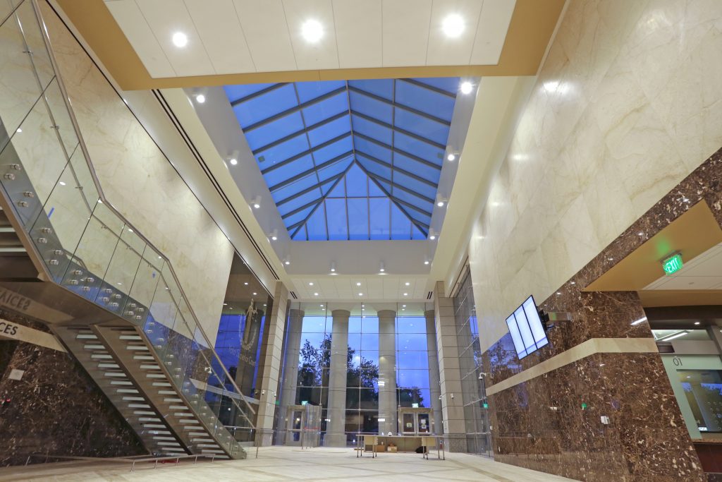 This five-story courthouse consolidates court operations from seven facilities into one central building housing 14 courtrooms. The 163,000-square-foot building includes significant improvements in security, such as separate hallways for the public, court staff, and in-custody defendants, as well as better seismic safety, access, and efficiency for staff and visitors.